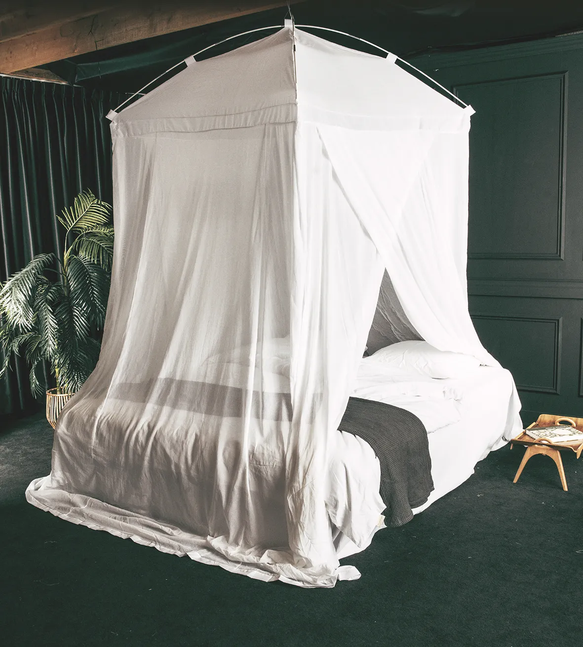De klamboe beschermt je tegen vervelende muggen en insecten in de slaapkamer.