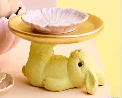 Vier Pasen in stijl met deze schattige konijnenschaal! Dit lieve konijntje ligt ontspannen op zijn rug en houdt een goudkleurig plateau omhoog, perfect voor het serveren van koekjes, chocolaatjes en natuurlijk paaseitjes. De speelse en charmante uitstraling maakt dit een echte eyecatcher op je paasontbijt of high tea.