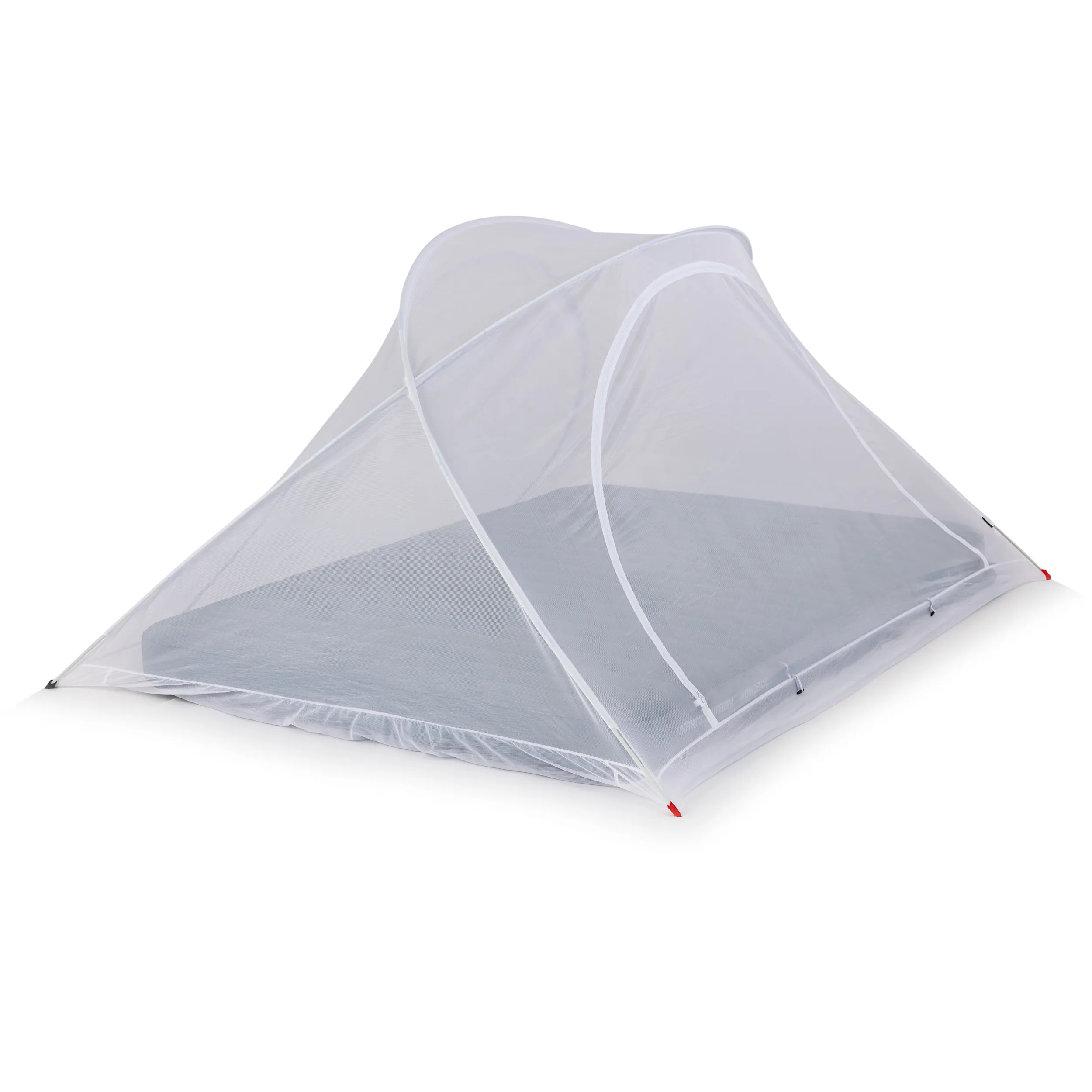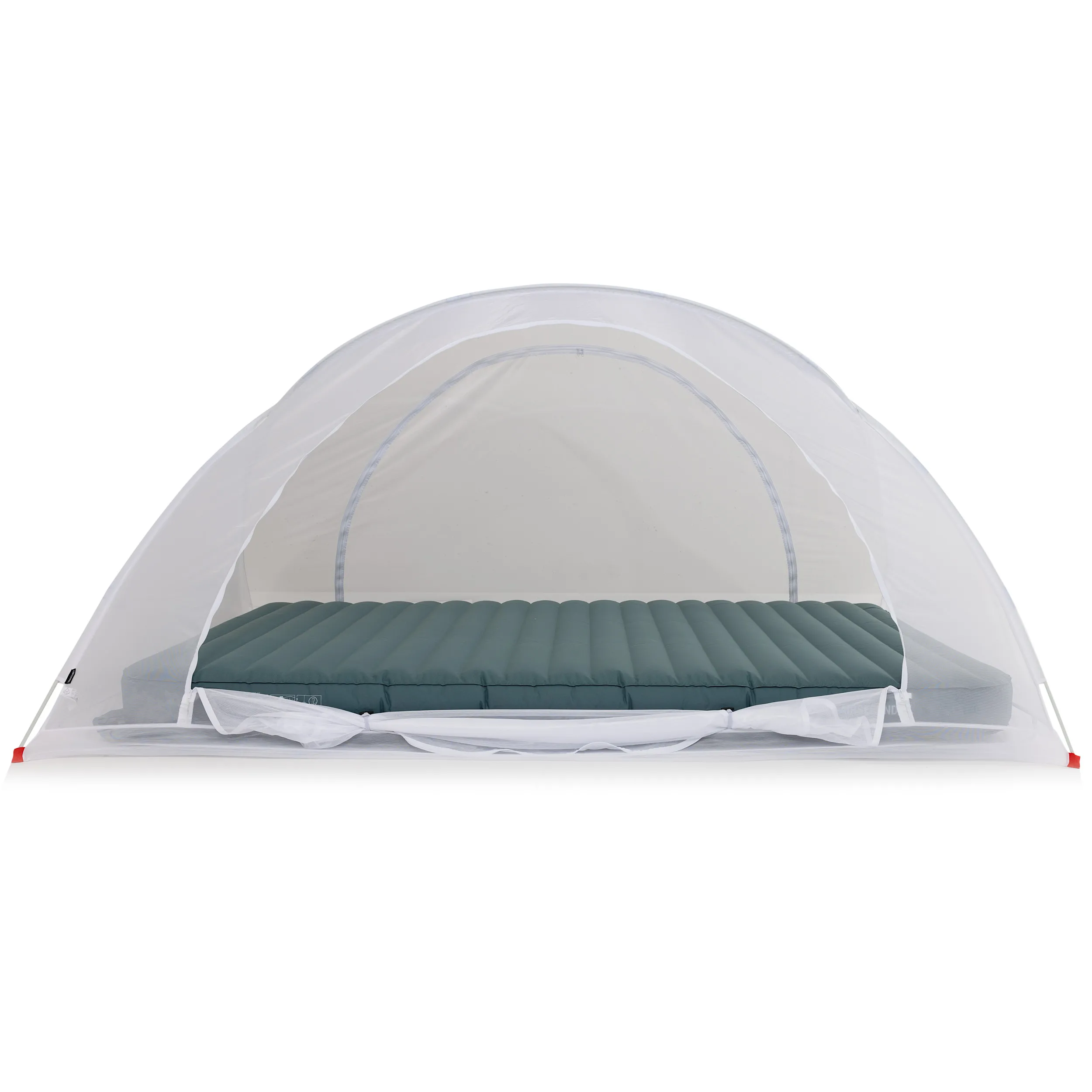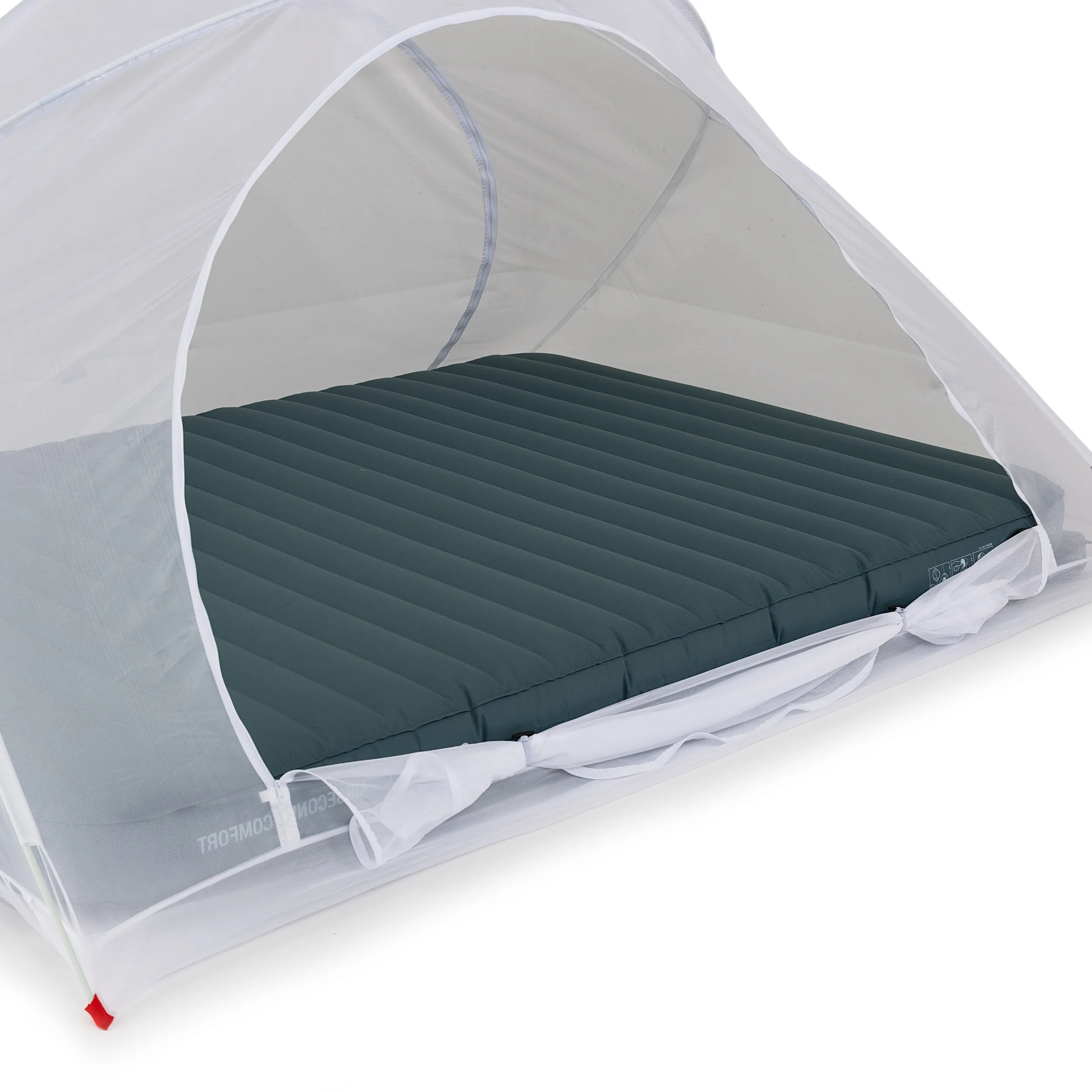 De onderzijde van de klamboetent is open zodat je jouw luchtbed of matras in de klamboetent kan plaatsen of je plaatst de klamboetent in zijn geheel op het bed.